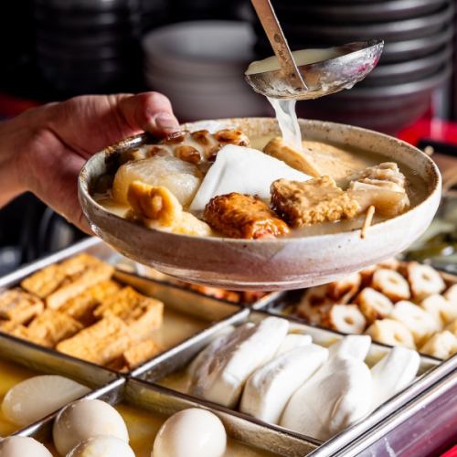 上品でスッキリとした甘みと深い味わいのある「鶏白湯出汁」で染み込ませた絶品おでんが大人気!